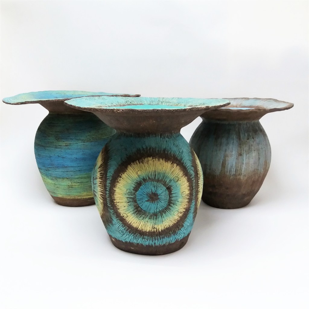There is so much to admire in Claire’s ceramics. She skillfully embraces an eye for decoration, earthy sculptural forms and delicious colour combinations..