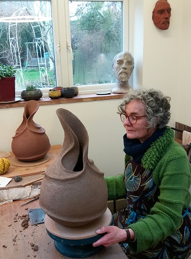 I am a ceramicist and artist and I live in Ledbury in rural Herefordshire. I work in stoneware clay using hand–building techniques predominately coiling, slabbing and press moulding. I create work that is both functional and sculptural and because my work is made in stoneware clay and fired to a high temperature, it can happily live in or outdoors.